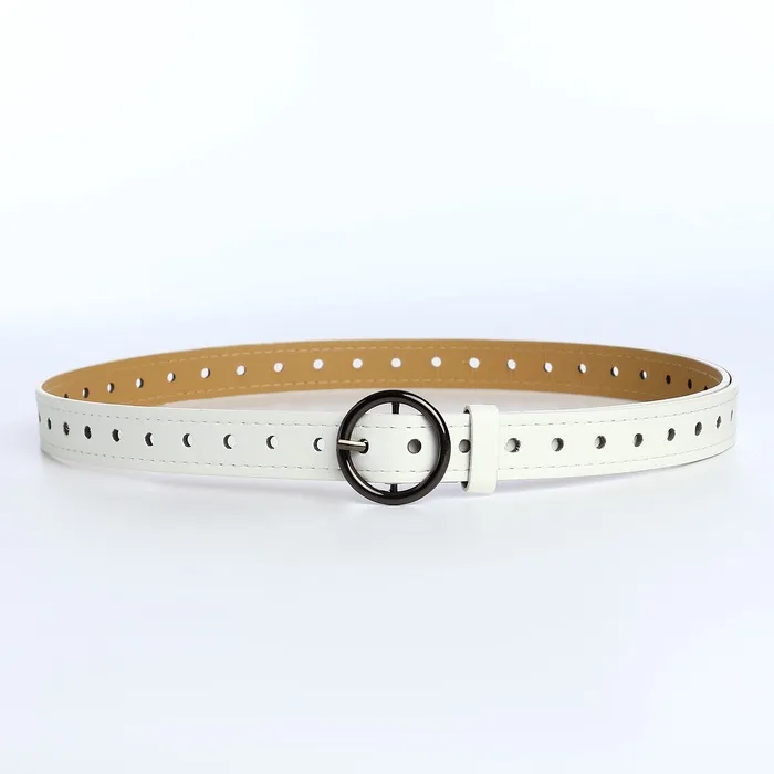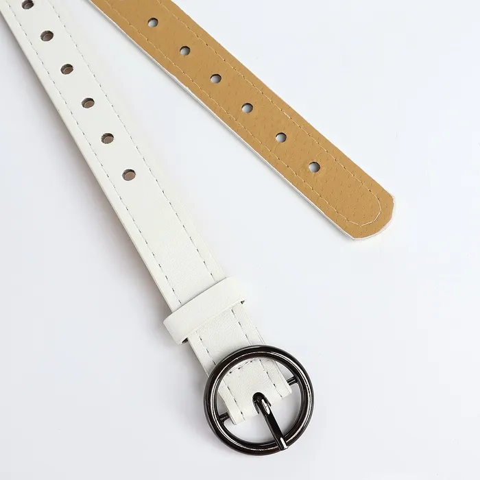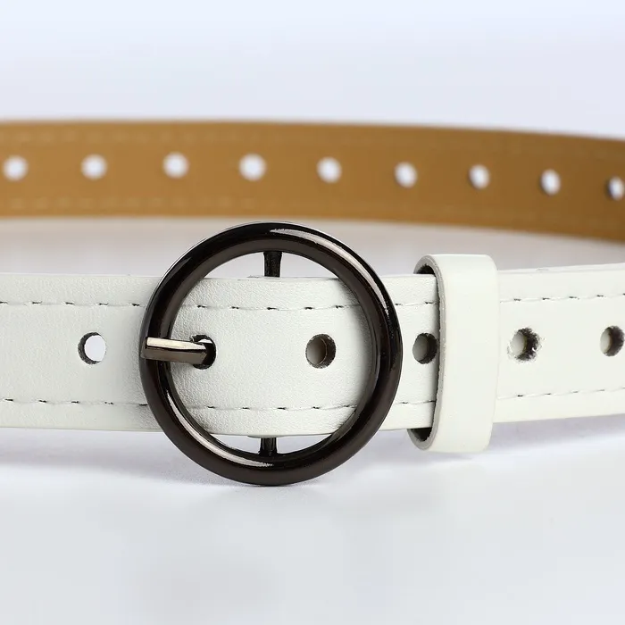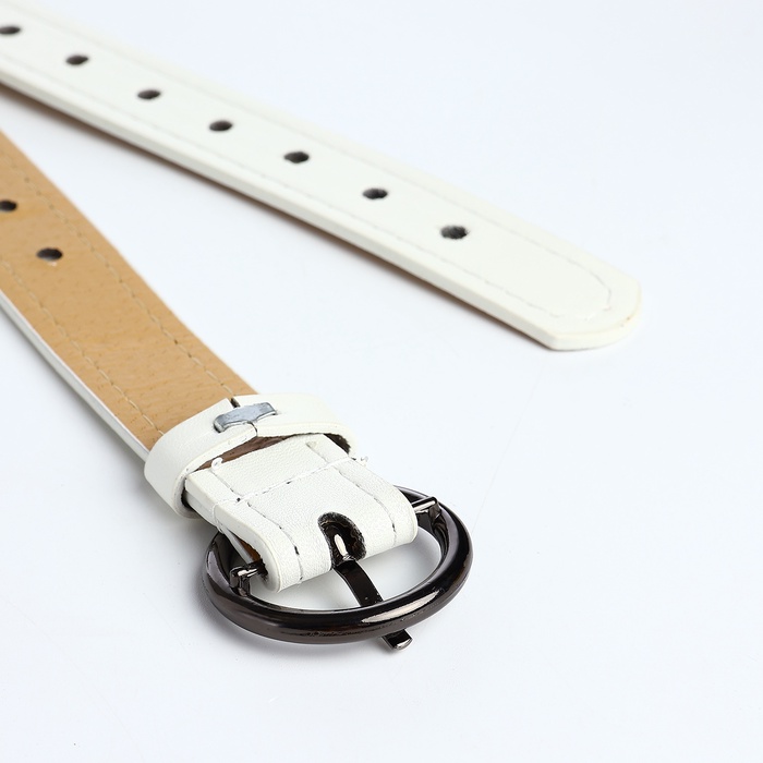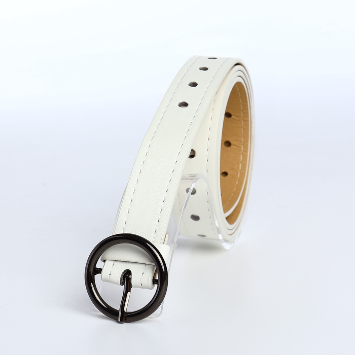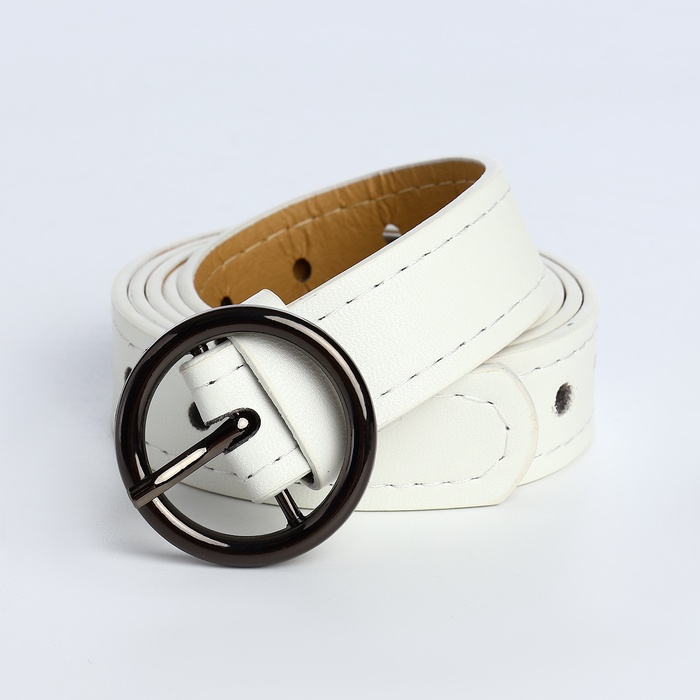 Ремень женский тонкий, 110×1.6 см, пряжка тёмный металл, круглая, белый — Характеристики