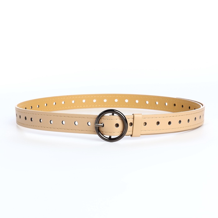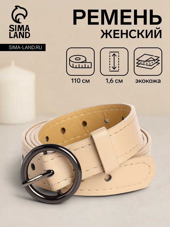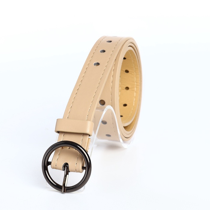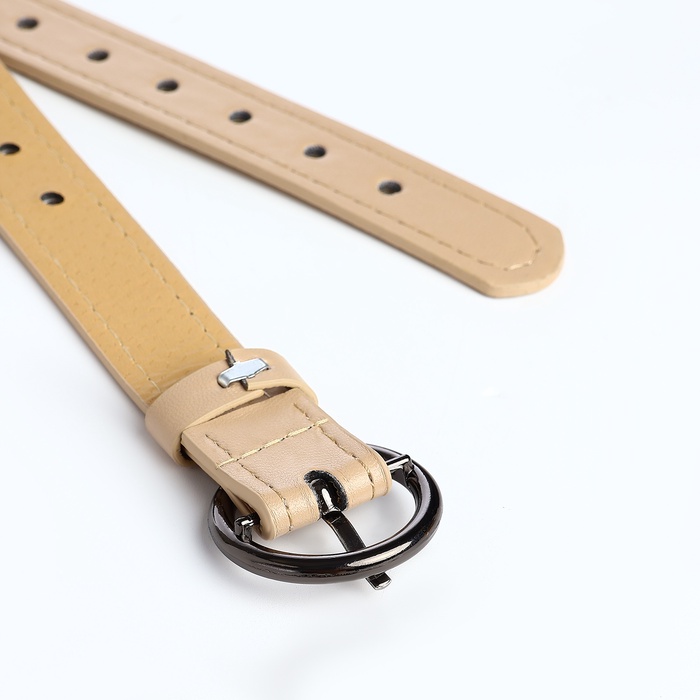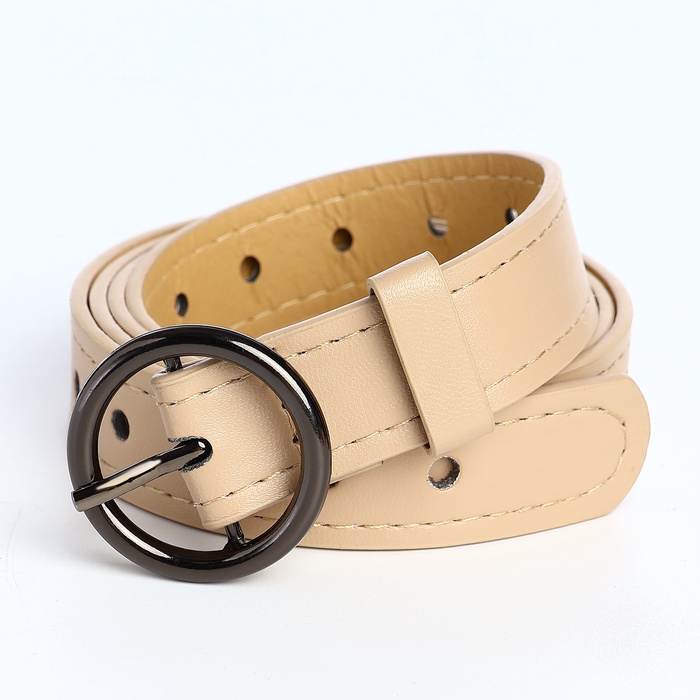 Ремень женский тонкий, 110×1.6 см, пряжка тёмный металл, круглая, бежевый — Характеристики