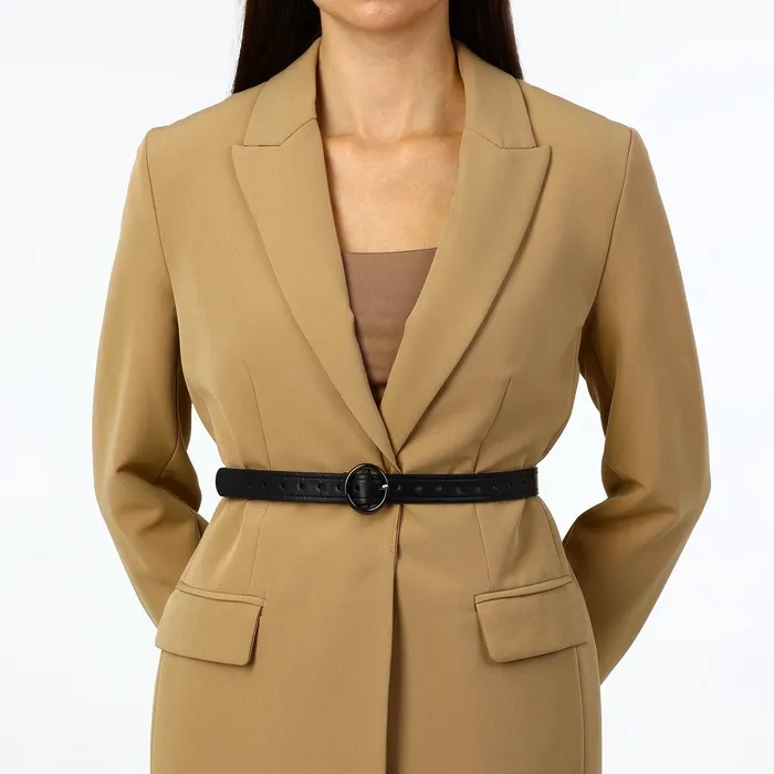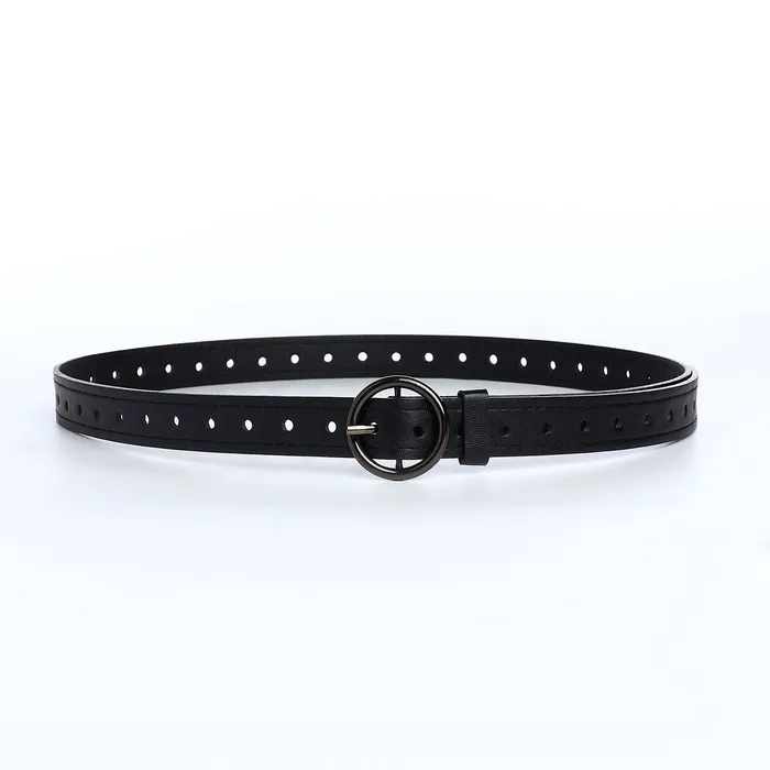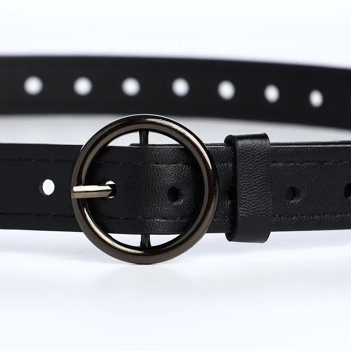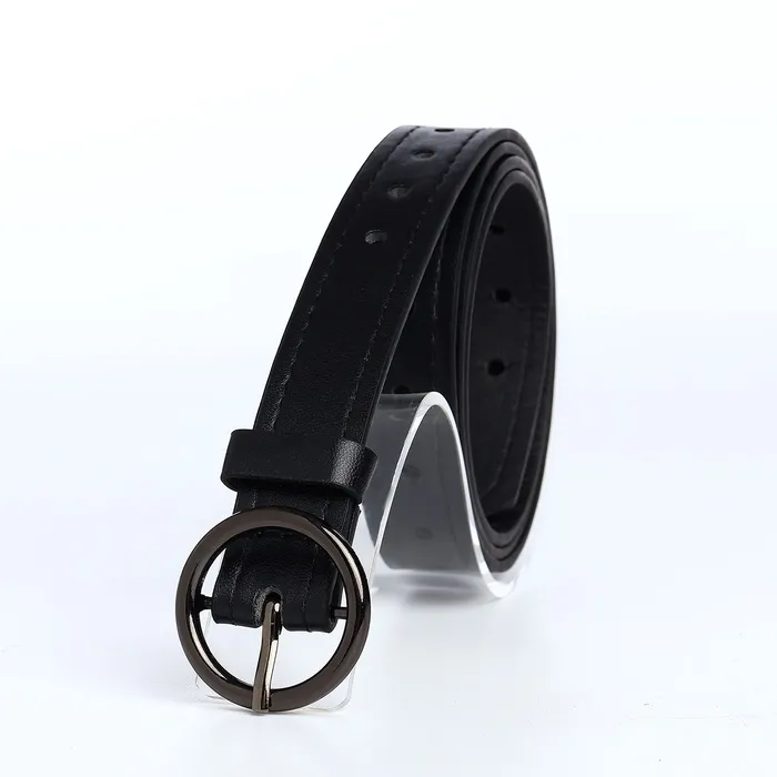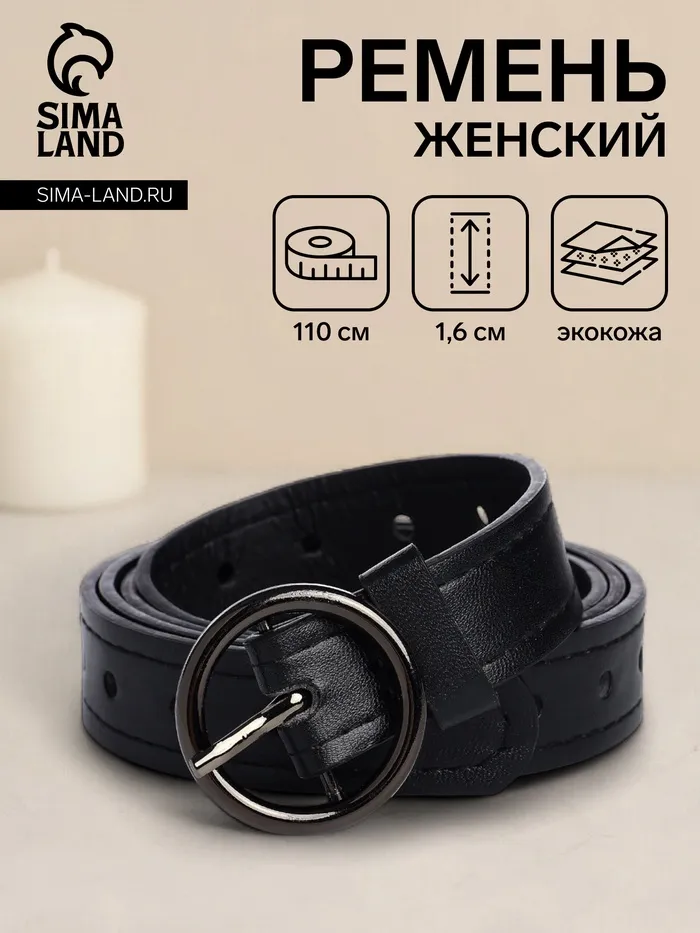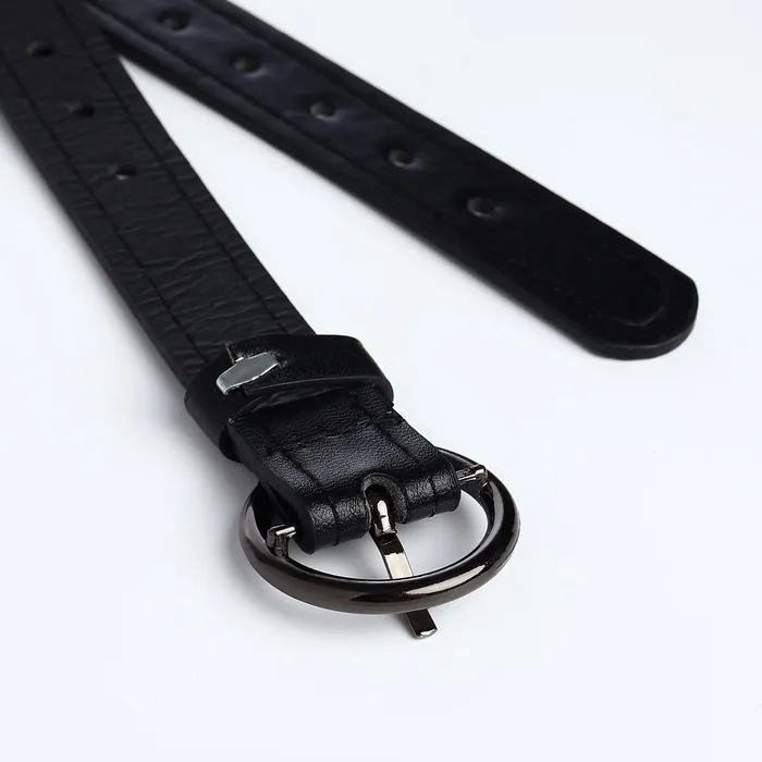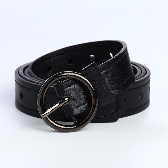 Ремень женский тонкий, 110×1.6 см, пряжка тёмный металл, круглая, чёрный — Характеристики