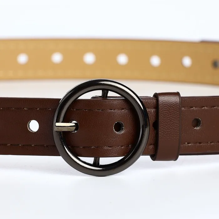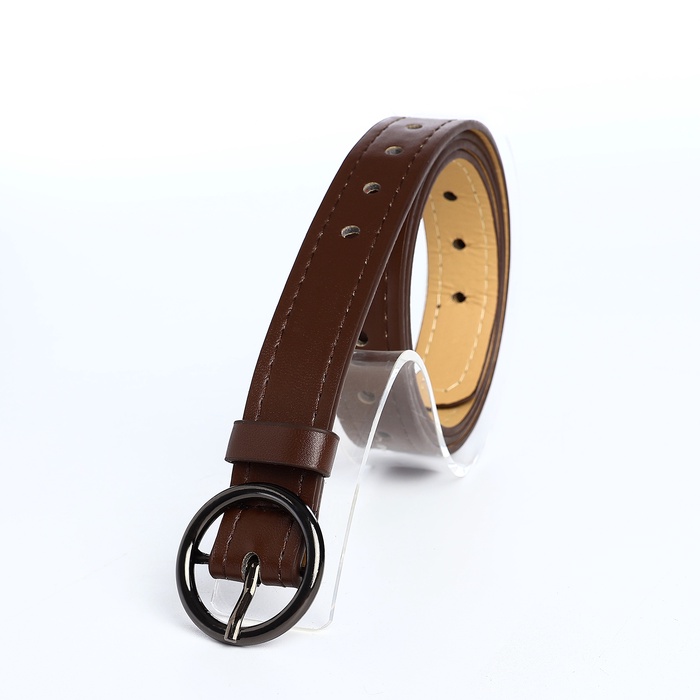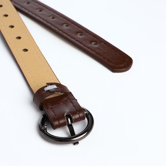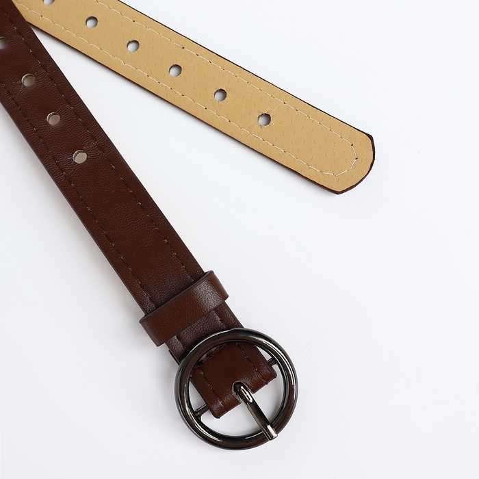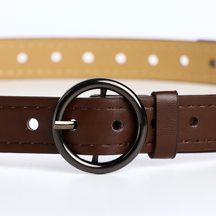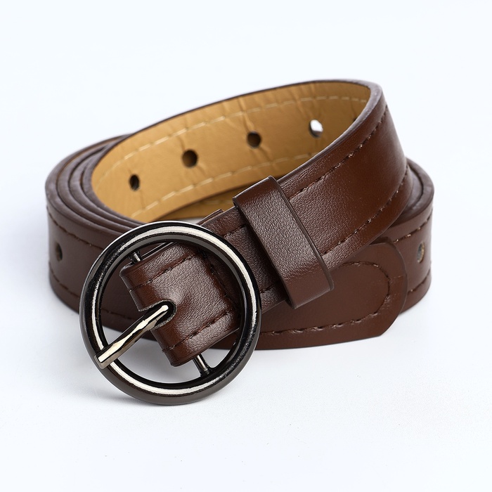 Ремень женский тонкий, 110×1.6 см, пряжка тёмный металл, круглая, коричневый — Характеристики
