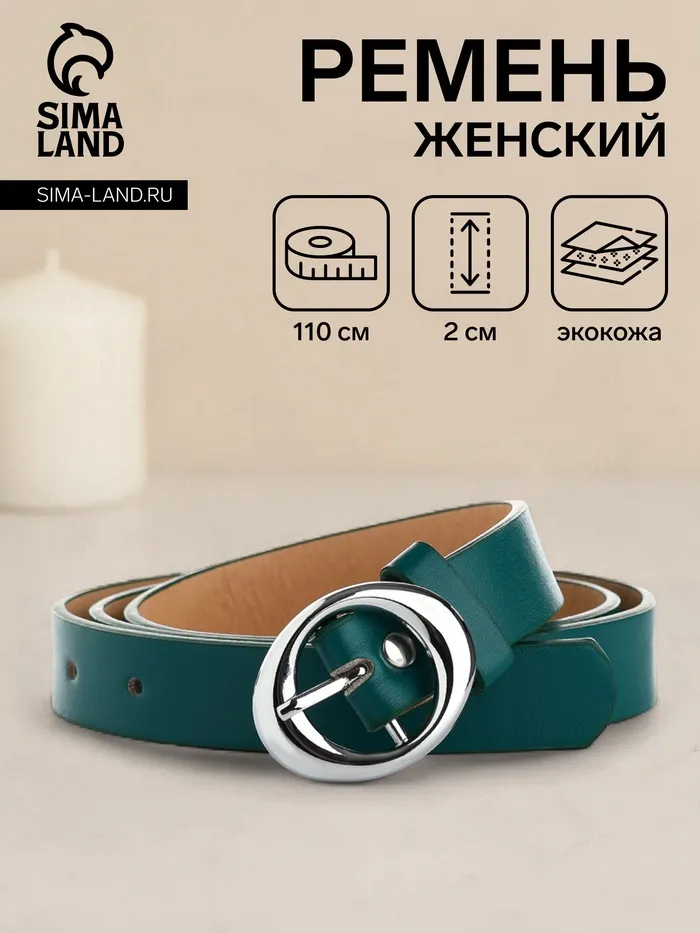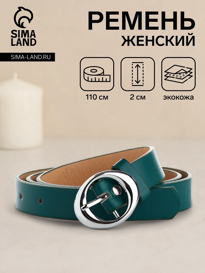 Ремень женский тонкий, 110×2 см, пряжка металл, серебристая, зелёный — Характеристики