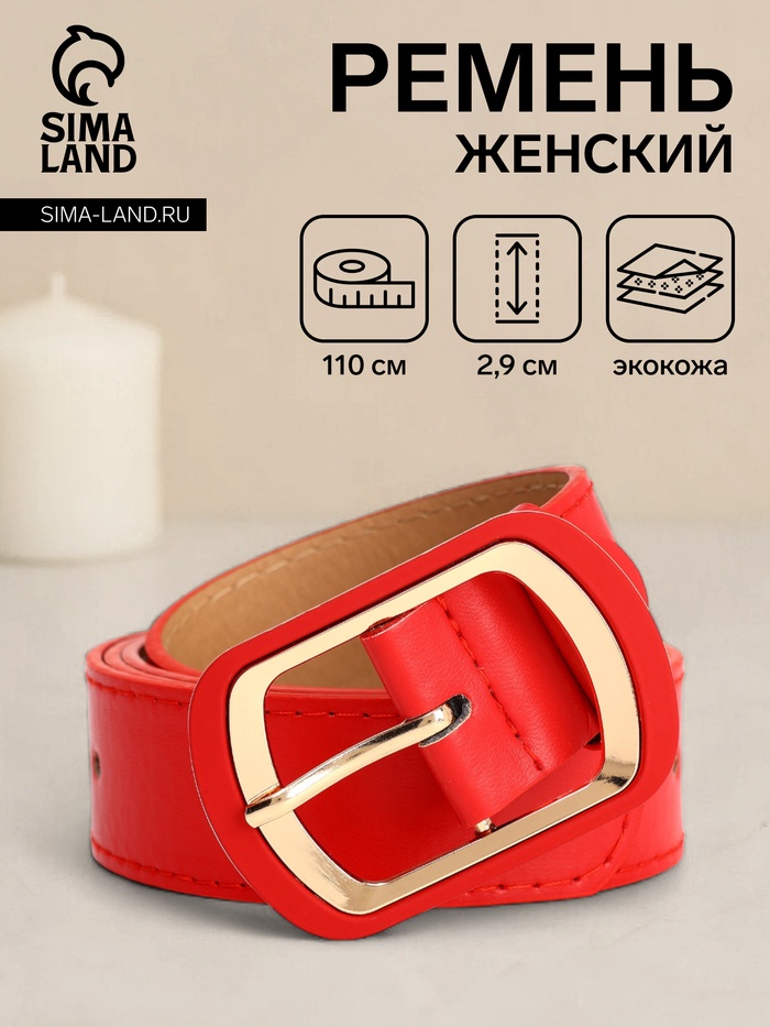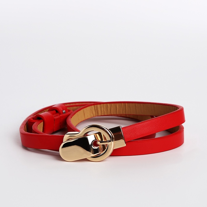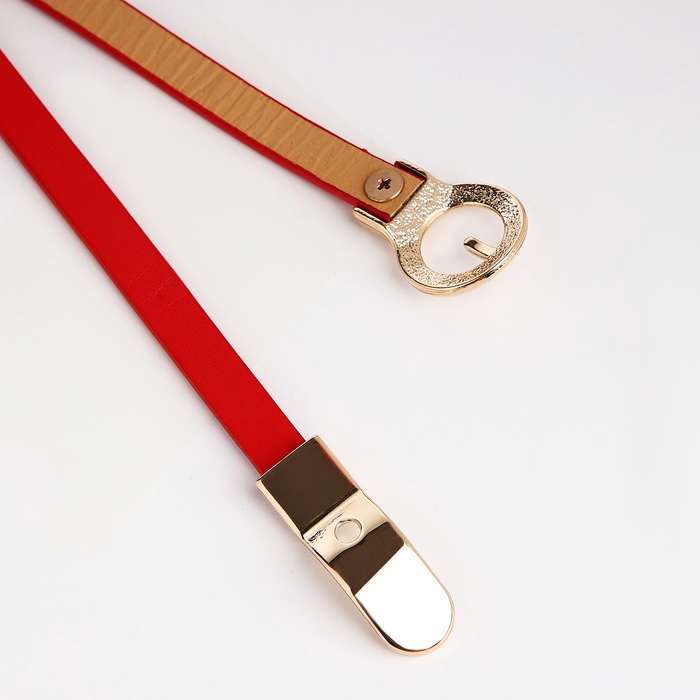 Ремень женский тонкий, 86×1 см, пряжка-зацепка металл, золотистая, красный — Характеристики