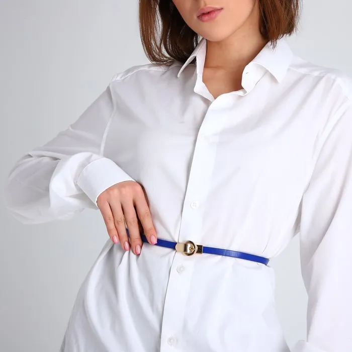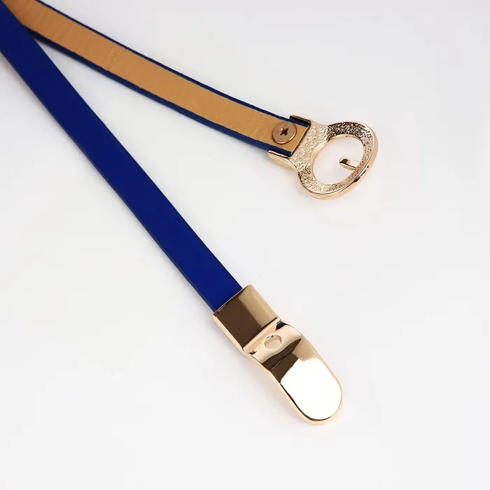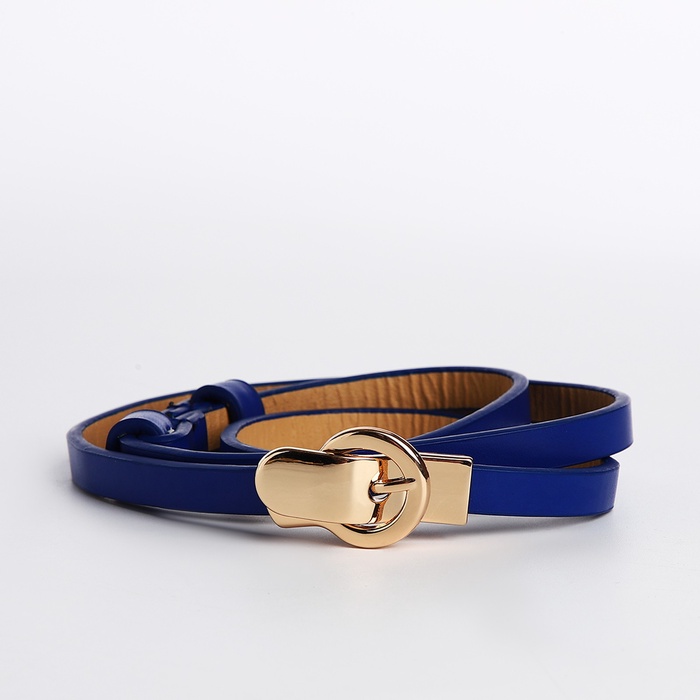 Ремень женский тонкий, 86×1 см, пряжка-зацепка металл, золотистая, синий — Характеристики