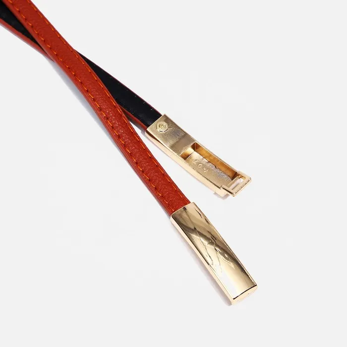Ремень женский тонкий, 95×1 см, пряжка металл, золотистая, рыжий — Характеристики