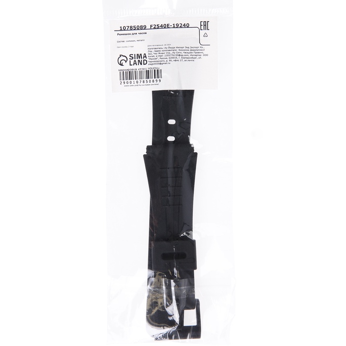 Ремешок для часов, 20 мм, силикон, длина 22 см, чёрный — Характеристики