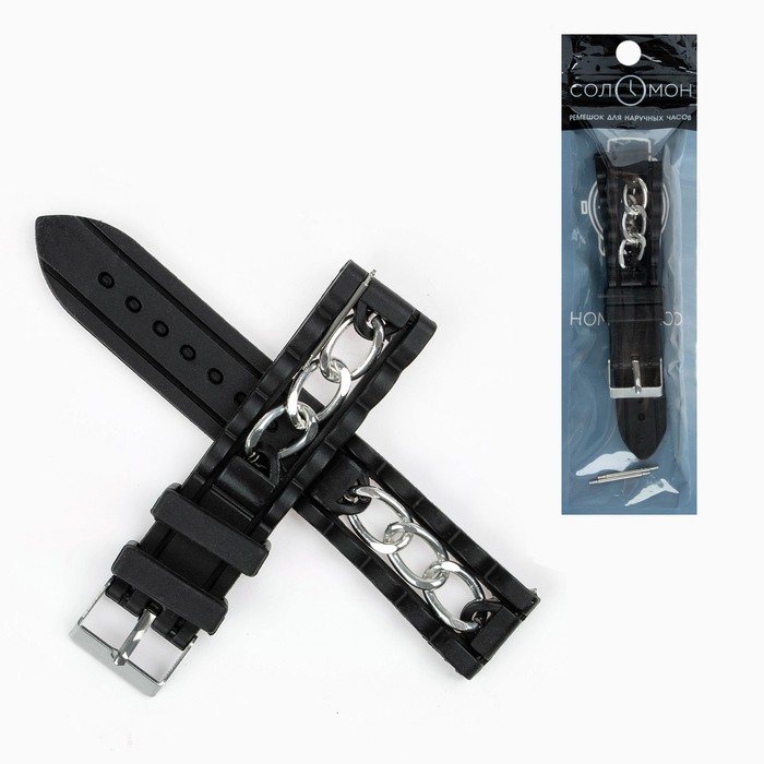 Ремешок для часов "Соломон", 20 мм, силикон, l-20 см, черный