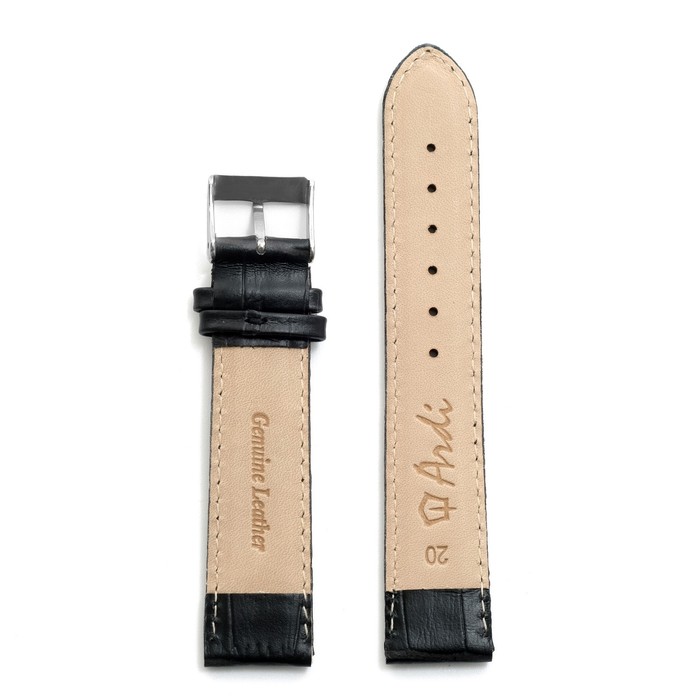 Ремешок для часов "Соломон", 20 мм, натуральная кожа, l-20 см, черный
