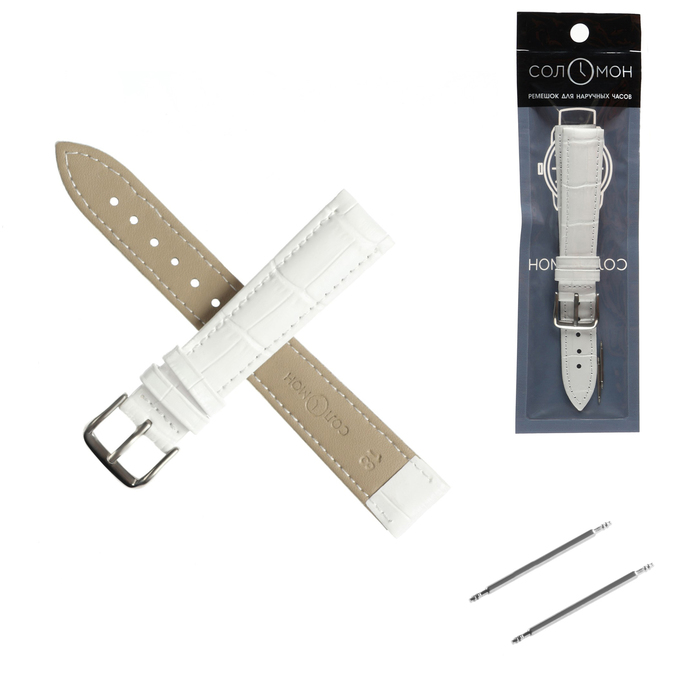Ремешок для часов кожаный "Соломон" 18 мм, l-20 см, белый — Характеристики