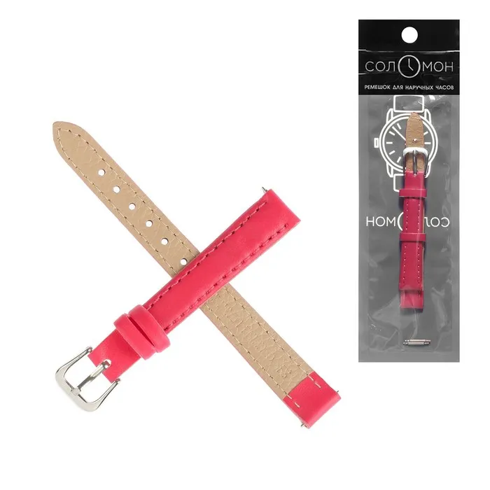Ремешок для часов "Соломон", 12 мм, натуральная кожа, l-20 см, розовый — Характеристики