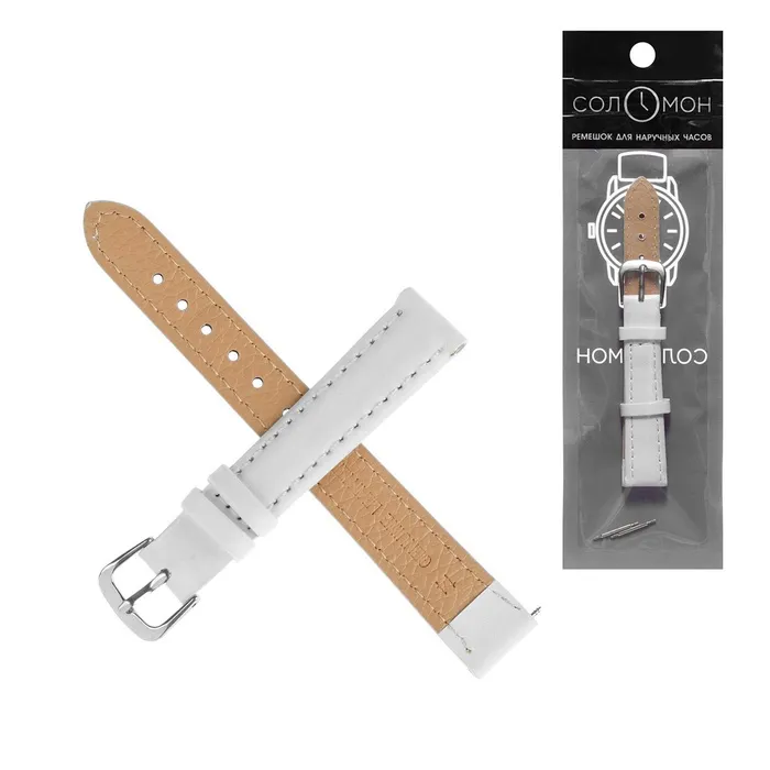 Ремешок для часов "Соломон", 14 мм, натуральная кожа, l-18 см, белый — Характеристики
