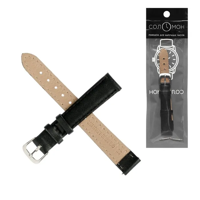 Ремешок для часов "Соломон", 14 мм, натуральная кожа, l-18 см, черный — Характеристики