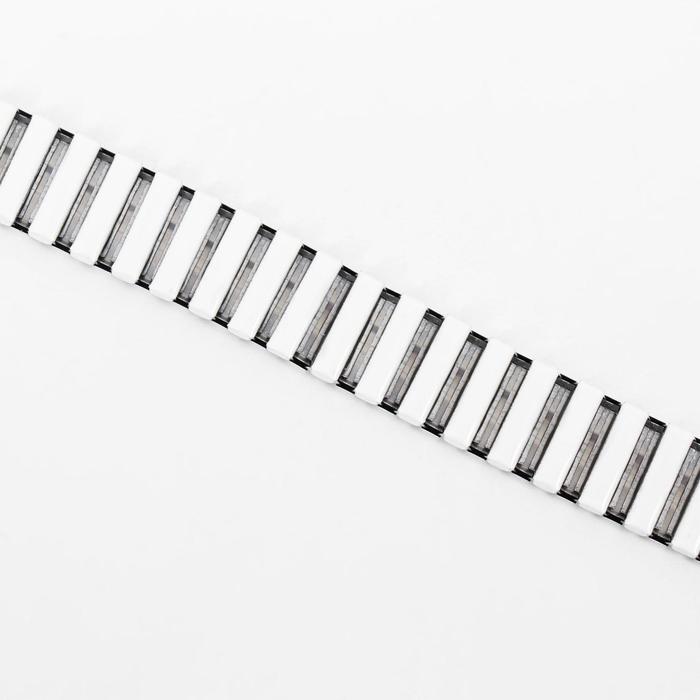 При загрязнении окунуть изделие в миску с теплой мыльной водой, а потом аккуратно с помощью ватной палочки, кисточки или мягкой зубной щетки удалить грязь, скопившуюся между звеньями, затем просушить ремешок, тщательно вытирая мягкой тряпочкой.