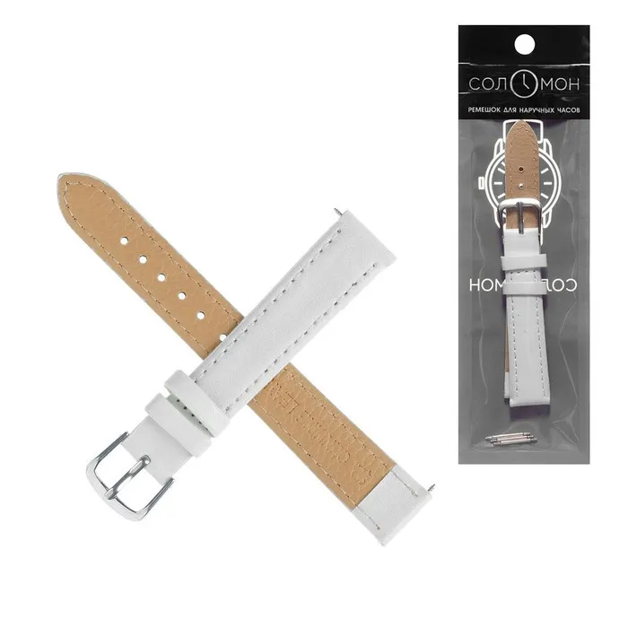 Ремешок для часов "Соломон", 16 мм, натуральная кожа, l-20 см, белый — Характеристики