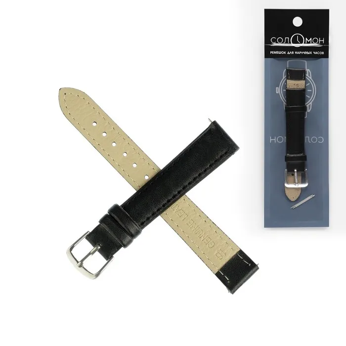 Ремешок для часов "Соломон", 16 мм, натуральная кожа, l-20 см, черный — Характеристики