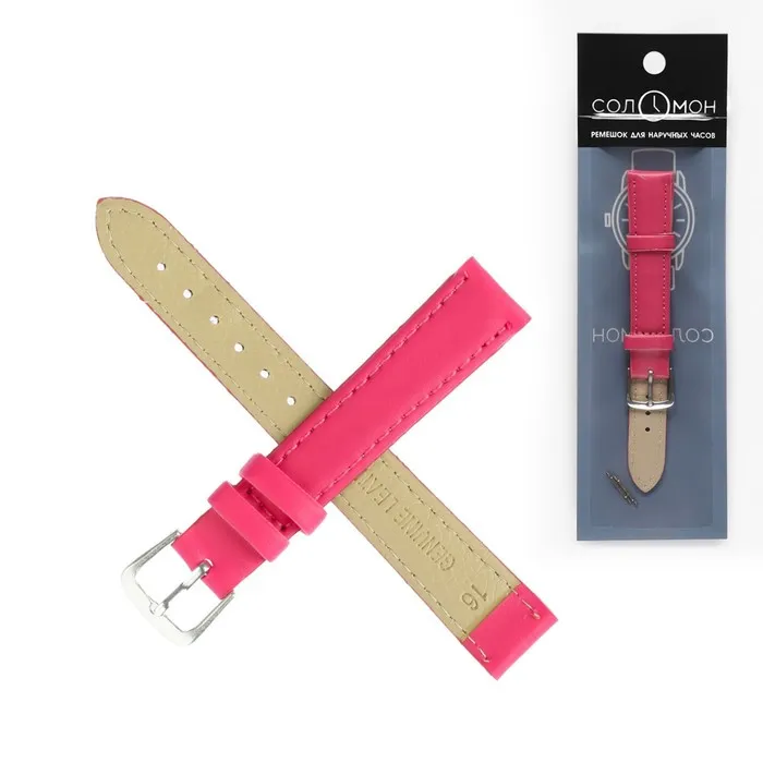 Ремешок для часов "Соломон", 16 мм, натуральная кожа, l-20 см, розовый — Характеристики