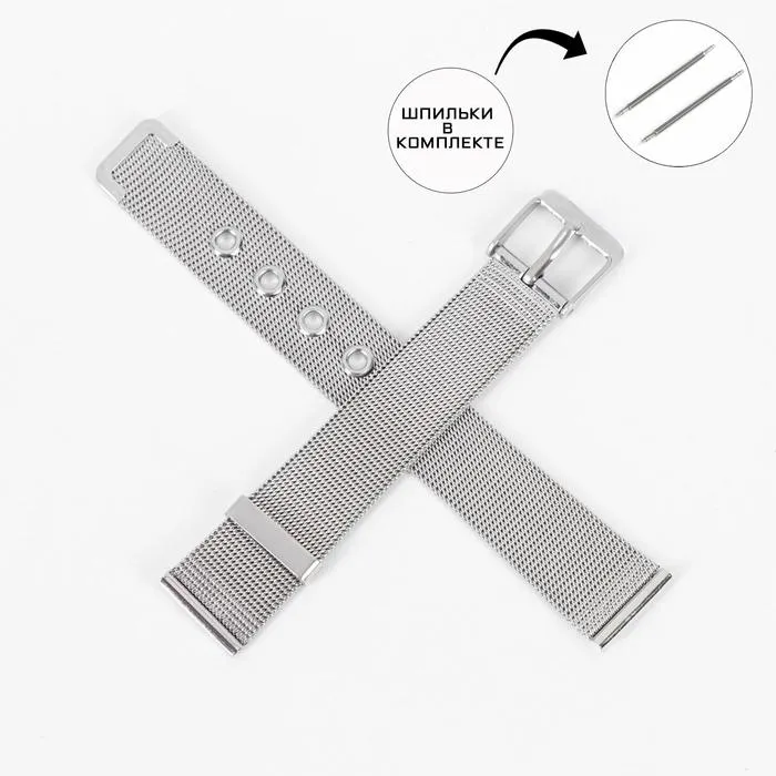 Ремешок для часов "Соломон", 16 мм, нержавеющая сталь, l-19.5 см, серебристый — Характеристики
