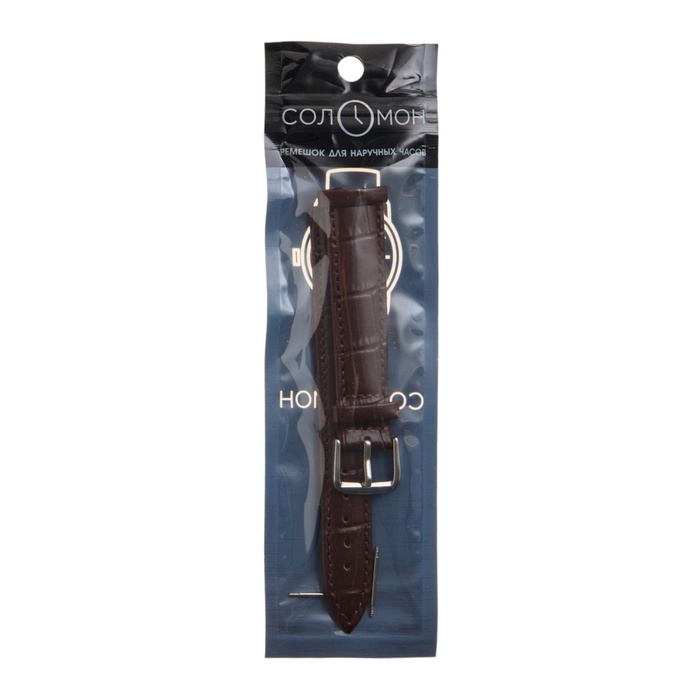 Ремешок для часов «Соломон» 18 мм, натуральная кожа, длина 20 см, коричневый с тиснением — Характеристики