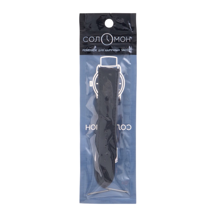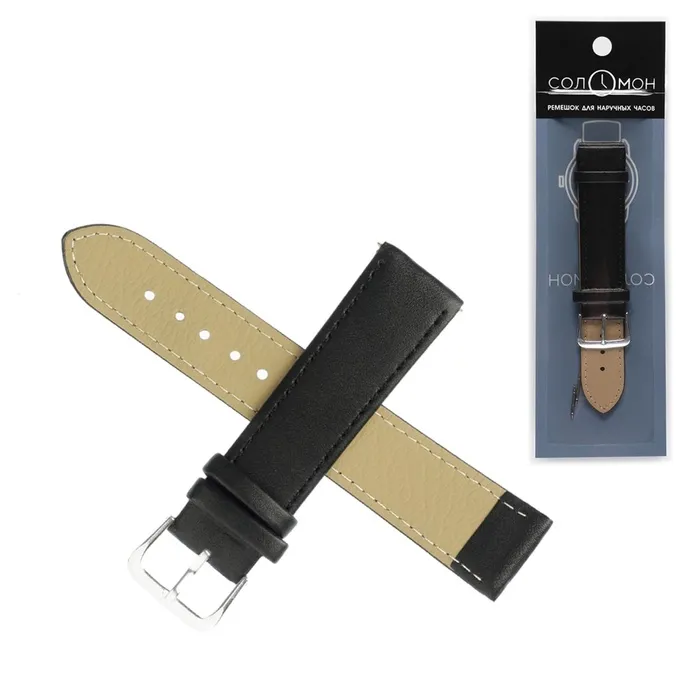 Ремешок для часов «Соломон», 20 мм, натуральная кожа, длина 20 см, чёрный — Характеристики