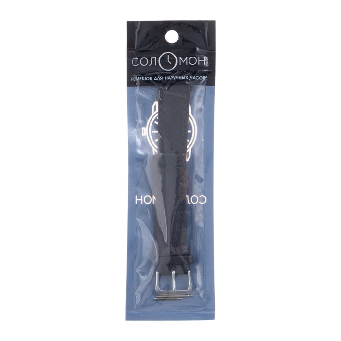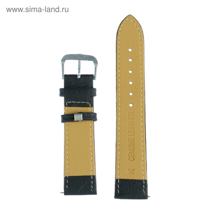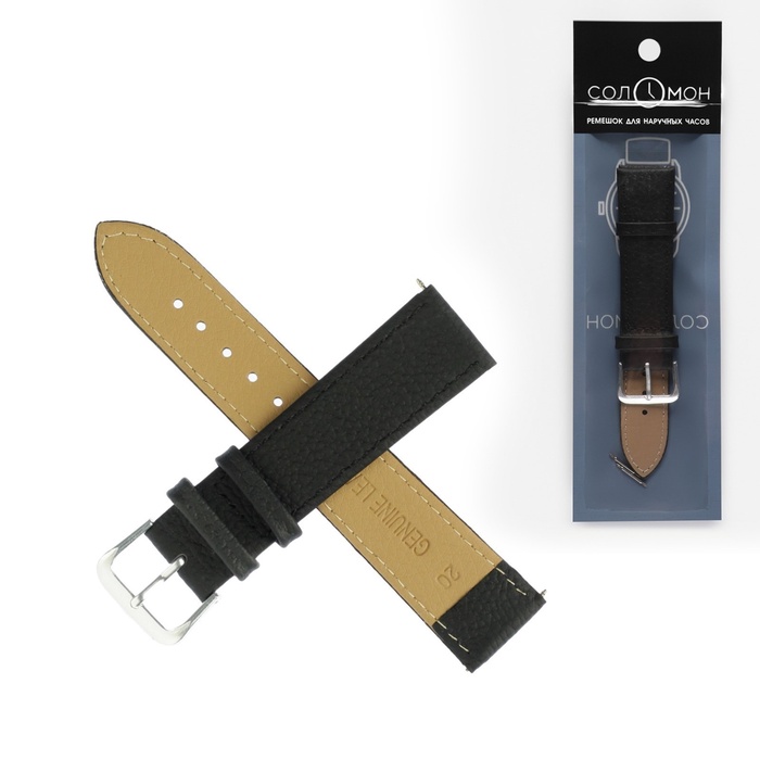 Ремешок для часов "Соломон", 20 мм, натуральная кожа, l-20 см, черный с тиснением — Характеристики