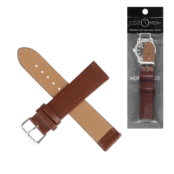 Ремешок для часов "Соломон", 20 мм, натуральная кожа, l-20 см, коричневый — Характеристики