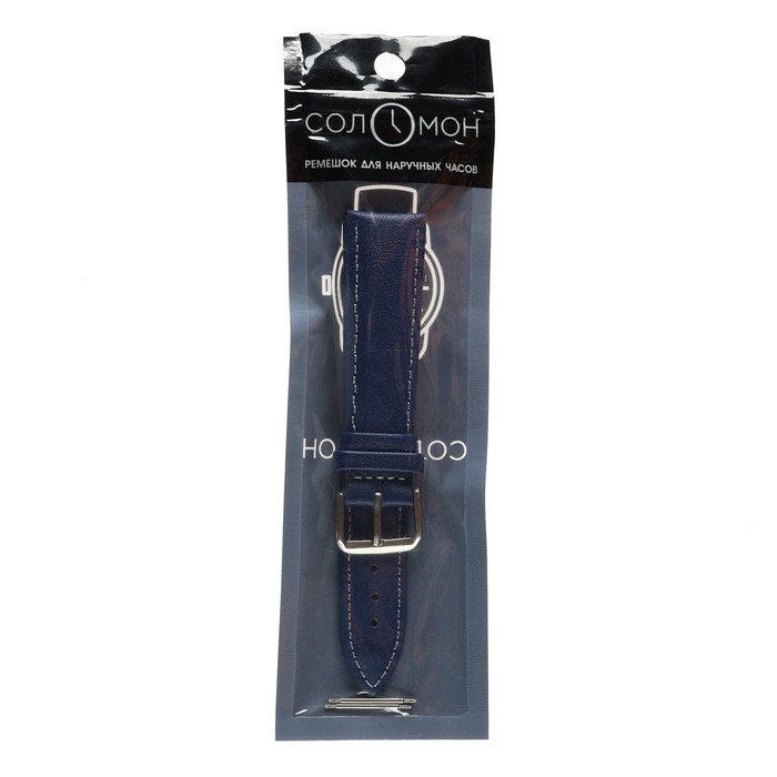 Ремешок для часов "Соломон" 20 мм, натуральная кожа, l-20 см,темно-синий — Характеристики