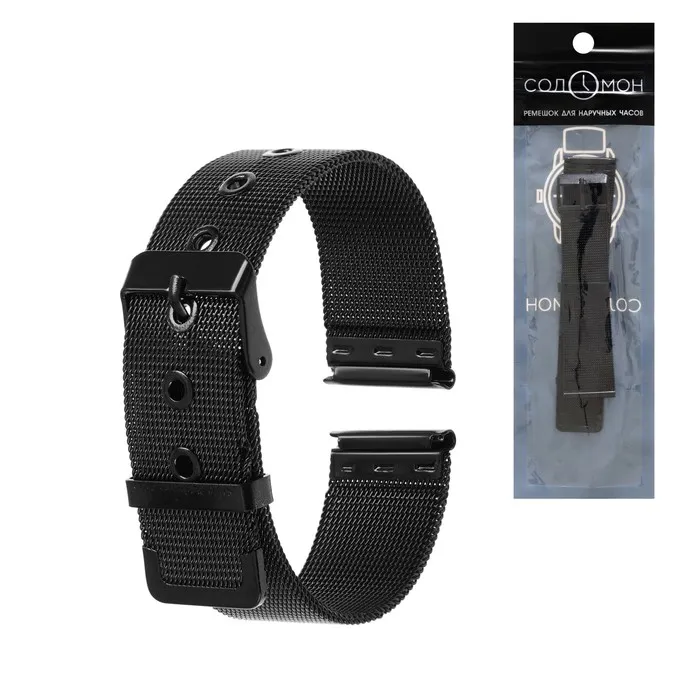 Ремешок для часов "Соломон", 20 мм, нержавеющая сталь, l-19.5 см, черный — Характеристики
