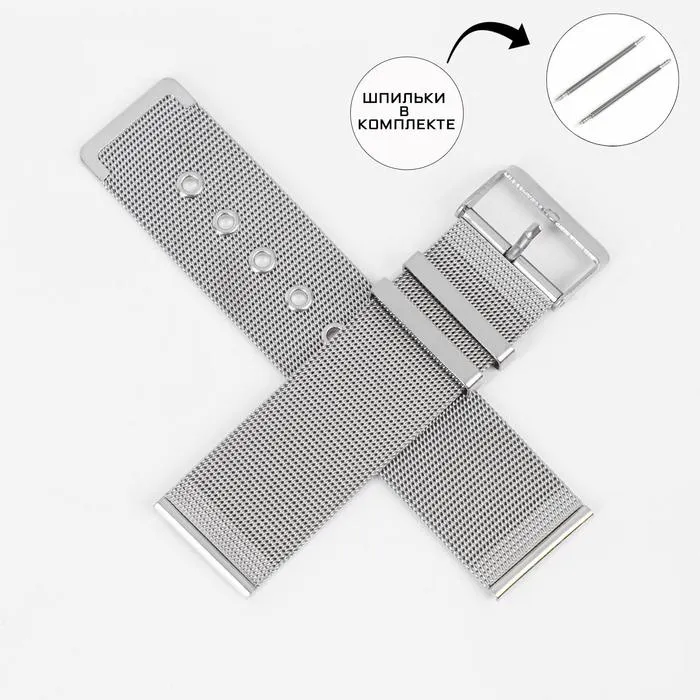 Ремешок для часов "Соломон", 22 мм, нержавеющая сталь, l-18.5 см, шпильки в комплекте — Характеристики