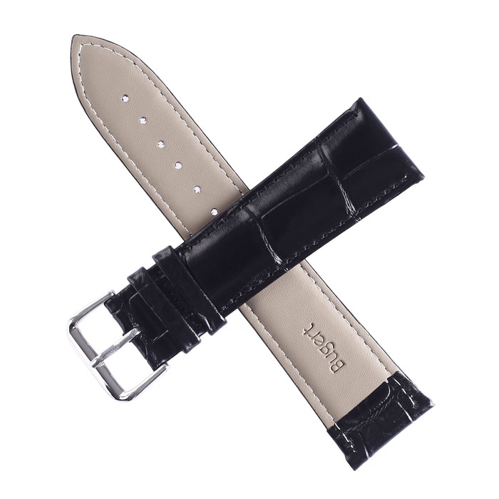 Ремешок для часов «Соломон» 24 мм, натуральная кожа, длина 20 см, чёрный с тиснением — Характеристики