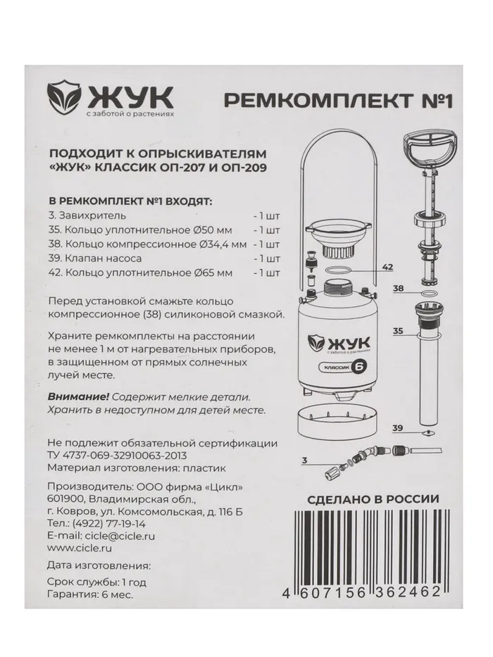 Случается, что техника выходит из строя… Но в этом нет ничего страшного! Достаточно быть готовым к подобным «сюрпризам». Ремкомплект №1, к опрыскивателям ОП-207, ОП-209, «Жук» — гарант вашей уверенности на садовом участке.