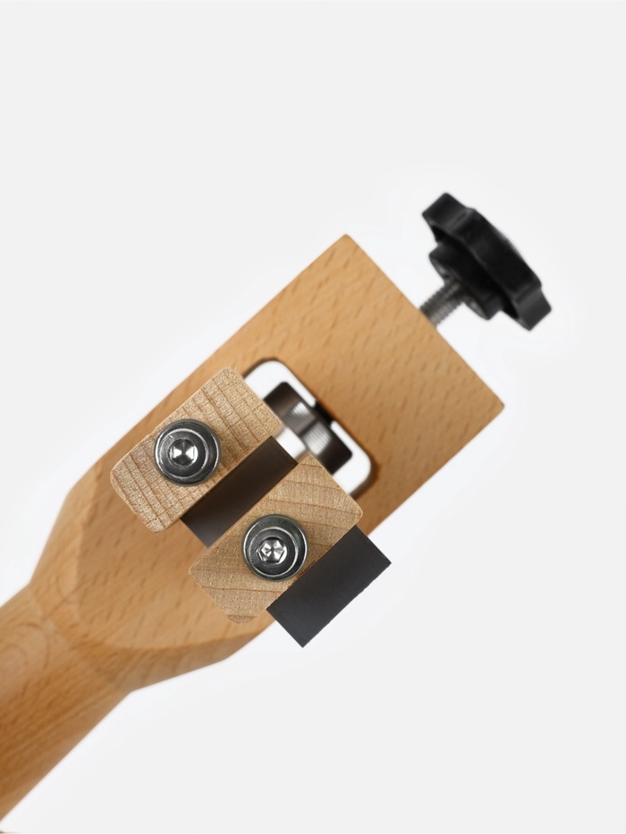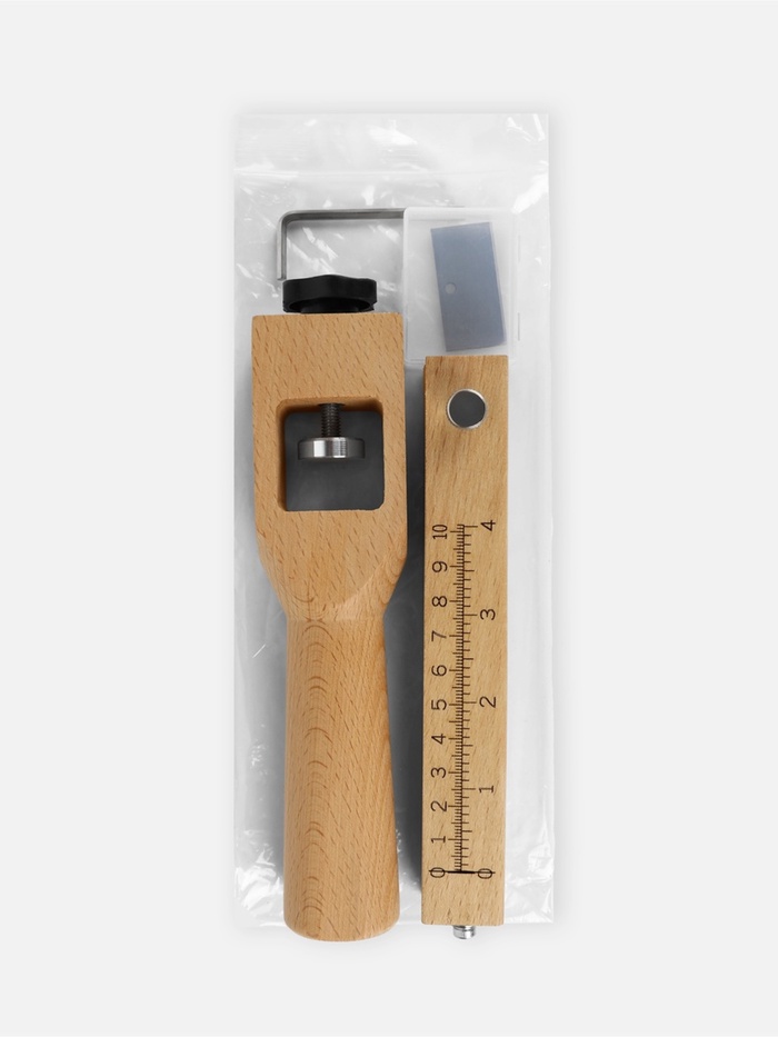 Деревянный корпус удобно ложится в руку, обеспечивая полный контроль над процессом резки. В комплекте пять острых лезвий, которые легко менять по мере необходимости — вам не придется прерывать работу из-за затупившегося инструмента.