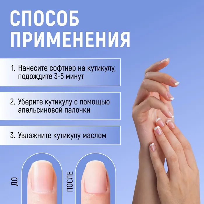 Позаботьтесь о своих ногтях с софтнером для кутикулы! Этот уникальный продукт разработан специально для мягкого и бережного ухода за кутикулой, делая её более гладкой и ухоженной.