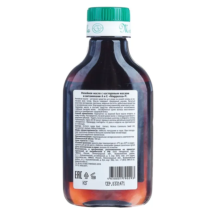 Репейное масло Mirrolla с касторовым маслом и витаминами, 100 мл — Характеристики