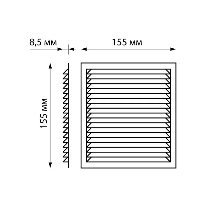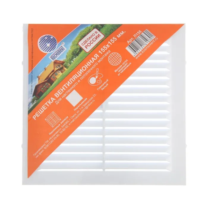 Решетка вентиляционная "КосмоВент" Л155, 155 х 155 мм, с сеткой, неразъемная — Характеристики