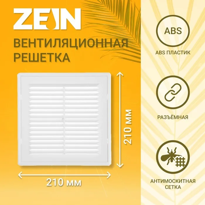 Решетка вентиляционная ZEIN Люкс ЛР210, 210×210 мм, с сеткой, разъемная