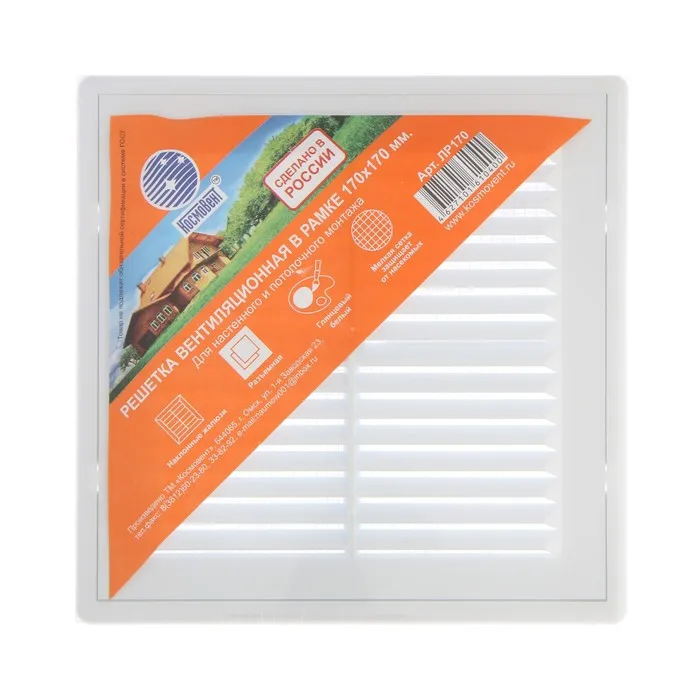 Решетка вентиляционная «КосмоВент» ЛР170, 170×170 мм, с сеткой, разъемная — Характеристики