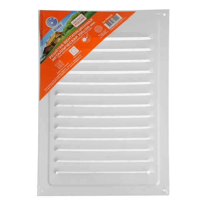 Решетка вентиляционная «КосмоВент» РМ2030, 200×300 мм, с сеткой, металлическая, белая — Характеристики