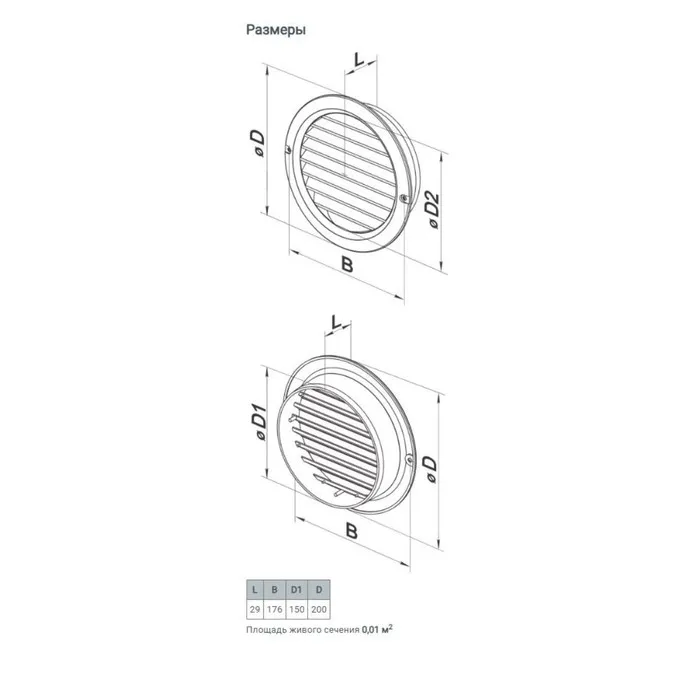 Круглая вентиляционная решетка устанавливается на наружную стену на вентиляционное отверстие и подсоединяется к воздуховоду диаметром 150 мм. Для соединения с воздуховодом используется фланец.