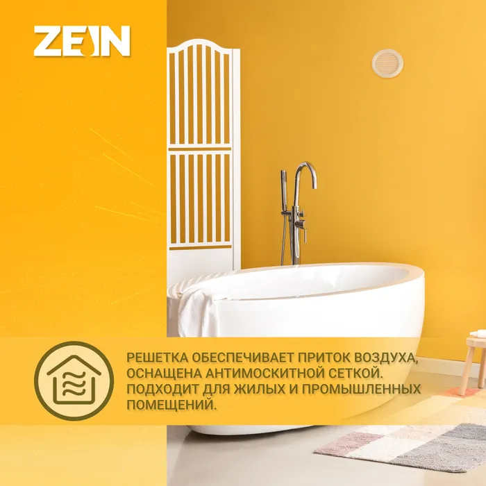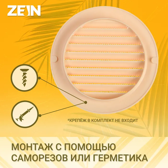 Решетка вентиляционная ZEIN, d=150 мм, круглая, с сеткой, фланец, неразъемная, слон. кость — Характеристики