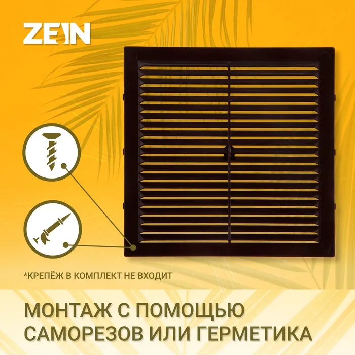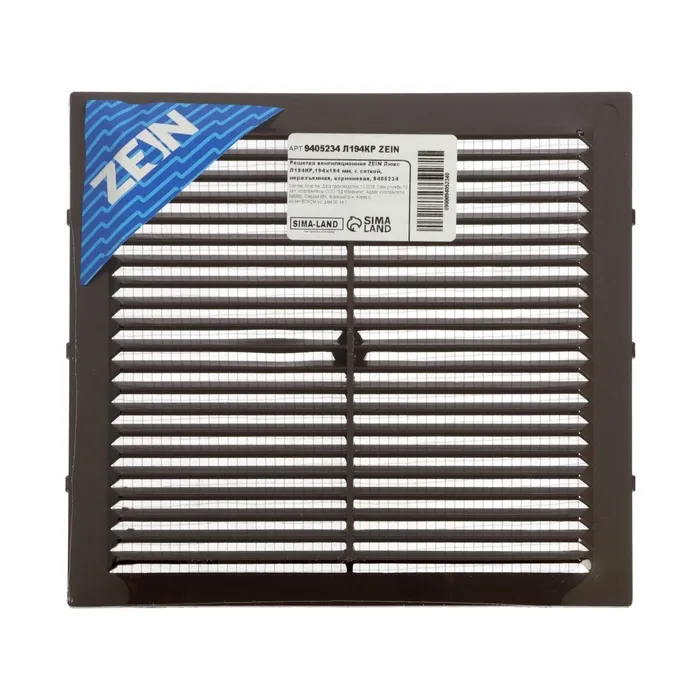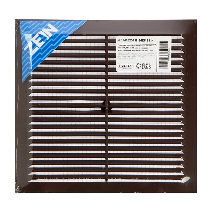 Решетка вентиляционная ZEIN Люкс Л194КР, 194×194 мм, с сеткой, неразъемная, коричневая — Характеристики