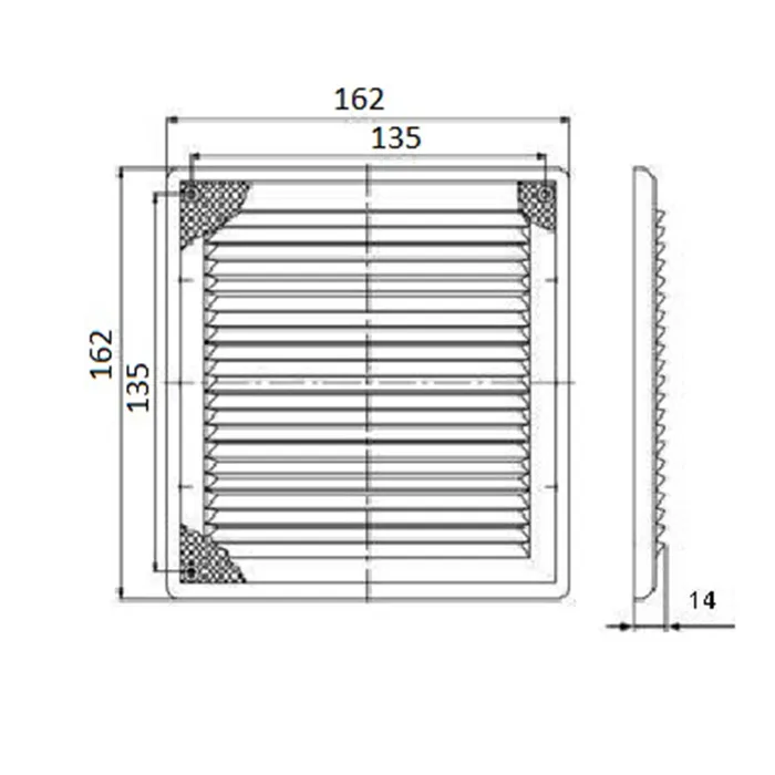 Решетка вентиляционная ZEIN Люкс ЛРР162 В, 162×162 мм, с сеткой, разъемная, регулируемая — Характеристики