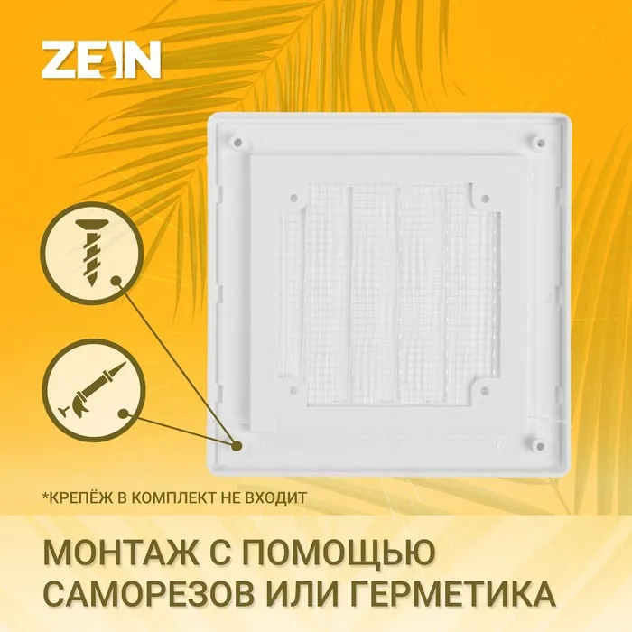 Решетка вентиляционная ZEIN Люкс Л194, 194×194 мм, с сеткой, неразъемная