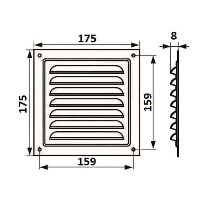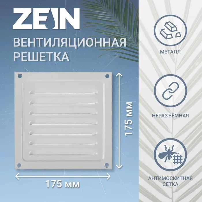 Решетка вентиляционная ZEIN Люкс РМ1717С, 175 х 175 мм, с сеткой, металлическая, серая — Характеристики
