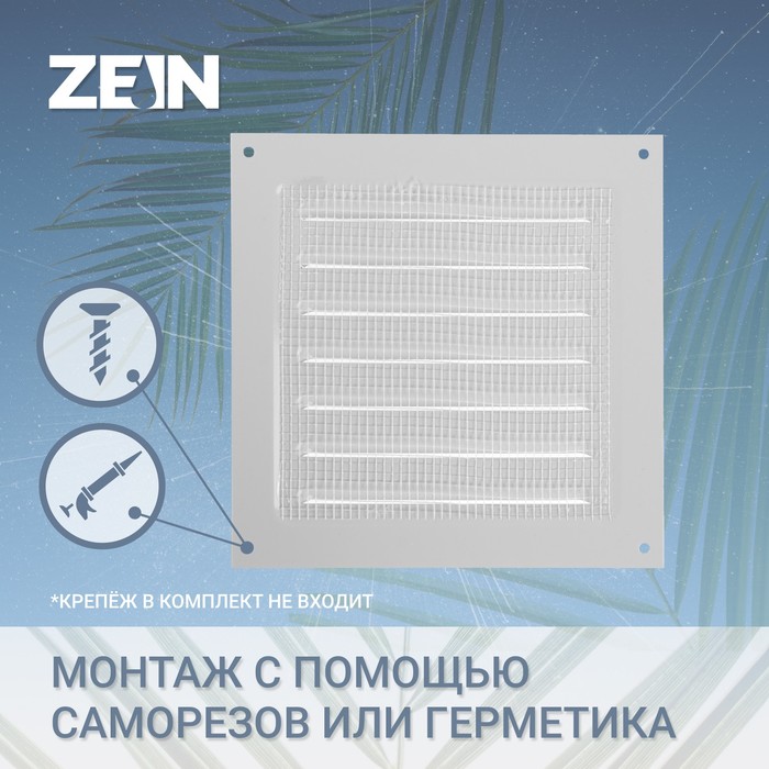 Решетка вентиляционная ZEIN Люкс Л300, 300×300 мм, с сеткой, неразъемная