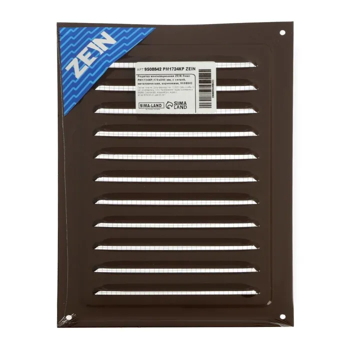 Решетка вентиляционная ZEIN Люкс РМ1724КР, 170×240 мм, с сеткой, металлическая, коричневая — Характеристики