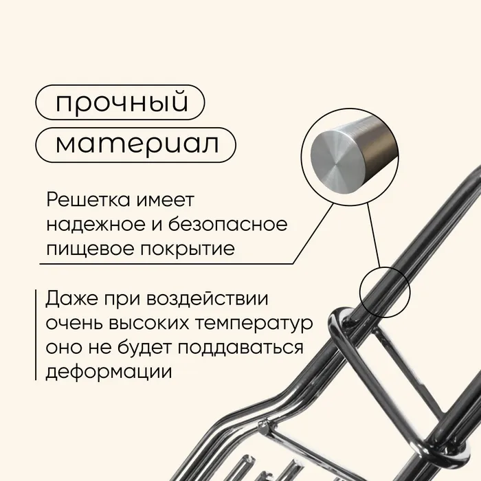 - Решётка сделана из хромированной стали с коррозионно-стойким покрытием.