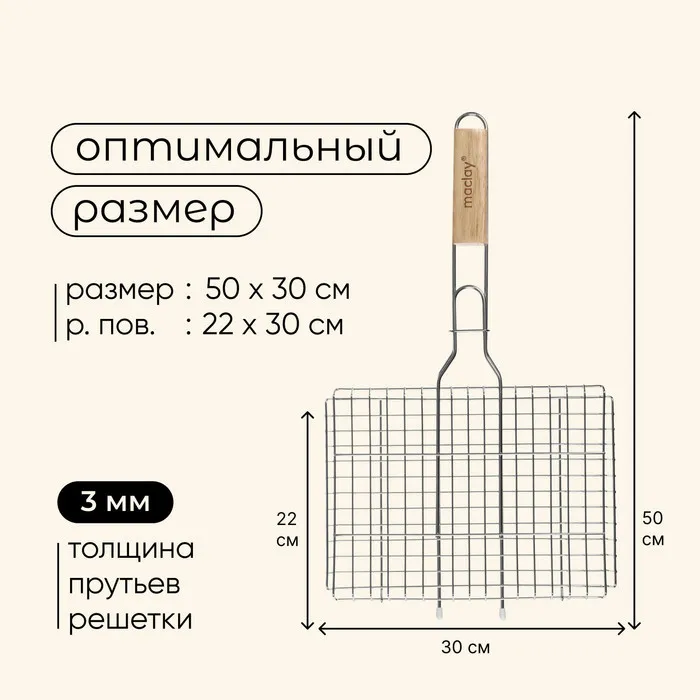 Решётка - гриль универсальная maclay, 22x30 см, нержавеющая сталь, для мангала — Характеристики
