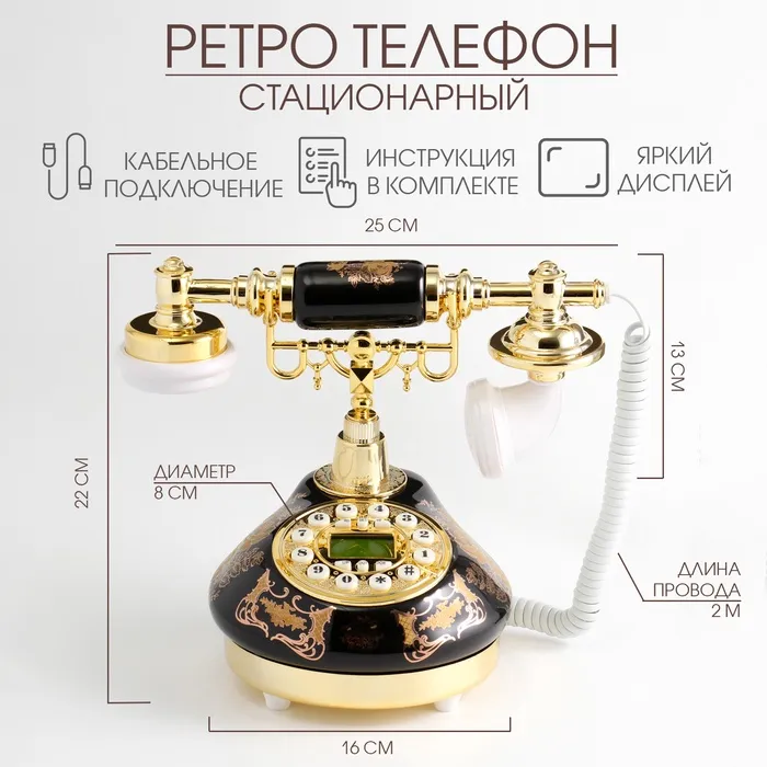 Изготовленный из высококачественных материалов, наш ретро-телефон привлекает внимание своей утонченной отделкой и выразительными линиями. Такой телефон станет идеальным акцентом в любом интерьере - от уютной гостиной до строгого офисного пространства. Его винтажный вид, дополненный элегантной ручкой и механическими кнопками, создает эффект возвращения в золотую эру телекоммуникаций.