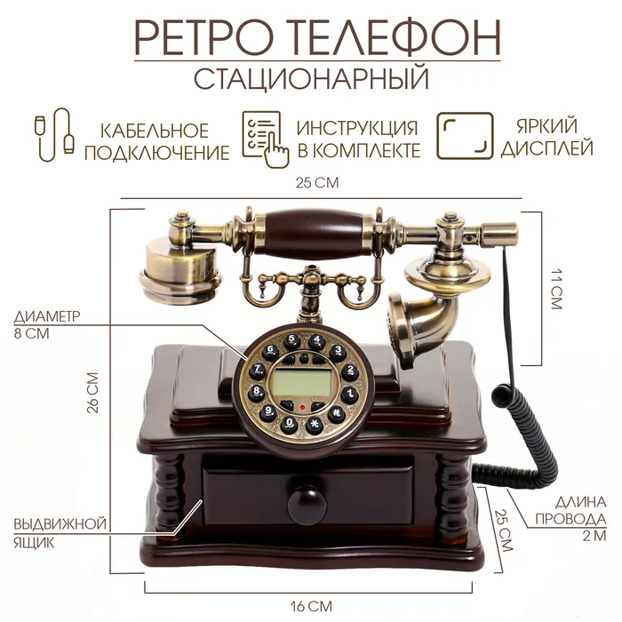 Ретро-телефон "Письменный стол", шкатулка, 16 х 25 х 26 см — Характеристики