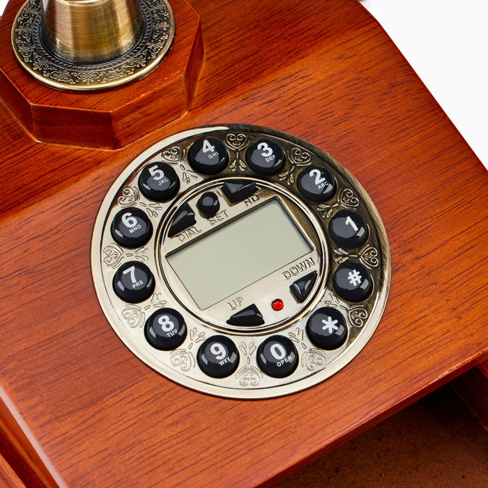 Изготовленный из высококачественных материалов, наш ретро-телефон привлекает внимание своей утонченной отделкой и выразительными линиями. Такой телефон станет идеальным акцентом в любом интерьере — от уютной гостиной до строгого офисного пространства. Его винтажный вид, дополненный элегантной ручкой и механическими кнопками, создает эффект возвращения в золотую эру телекоммуникаций.