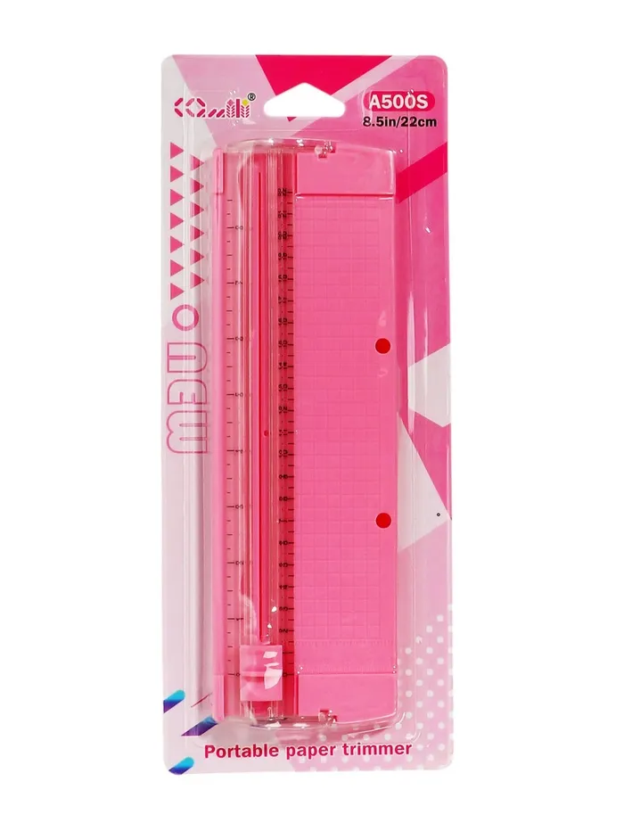 Эффективное роликовое устройство для резки бумаги — отличный выбор для домашних офисов или творческих студий. Этот инструмент в розовом оформлении воплощает безопасность и стиль, сочетая функцию и красивый дизайн. Он идеально подходит для точного обрезания до трёх листов формата A5, обеспечивая лёгкую и аккуратную обработку документов.